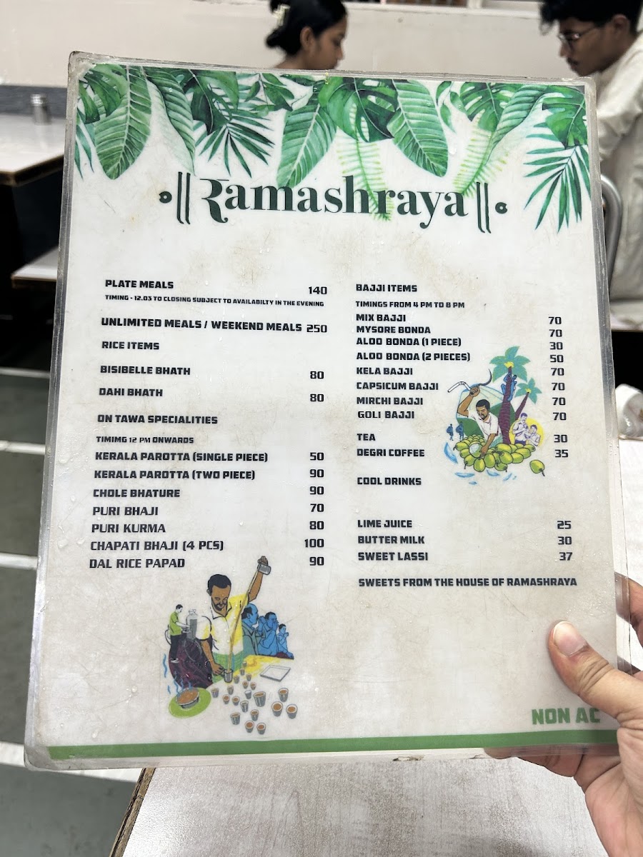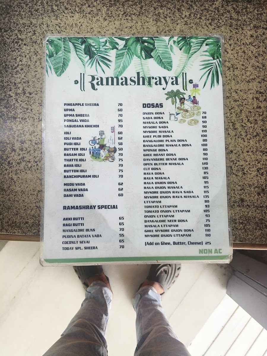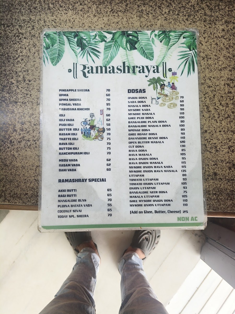 The menu at Ram Ashraya offers a straightforward and comforting selection of classic South Indian dishes, ideal for those seeking familiar, home-style flavors in a casual setting. The focus is on simple, well-prepared items that work well for breakfast, brunch, or light meals throughout the day.